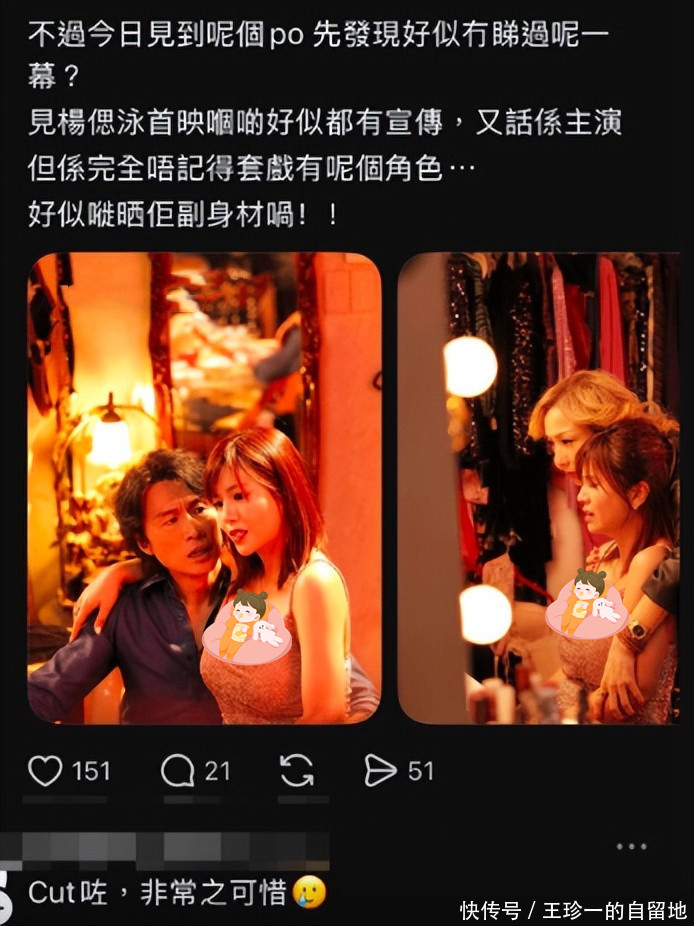 对于自己付出努力,做出牺牲的电影片段被删,杨偲泳很无奈。